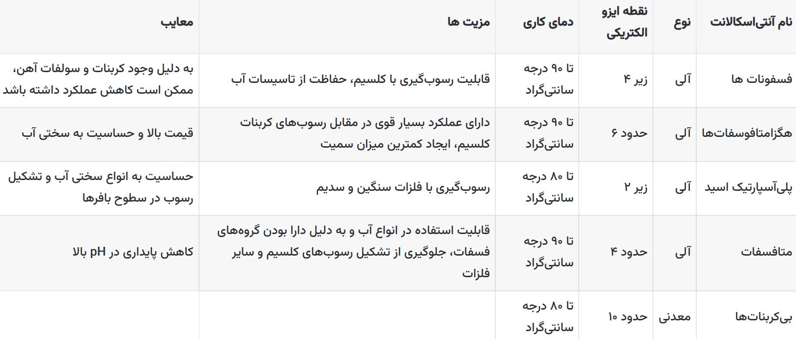 3. عوامل مؤثر در انتخاب آنتی اسکالانت مناسب